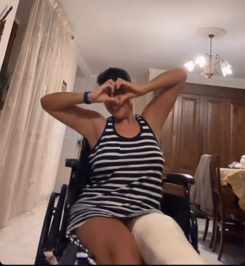 Here I am in Pompeii 32 days after the first surgery… I was in a wheelchair most of the time!! 😬